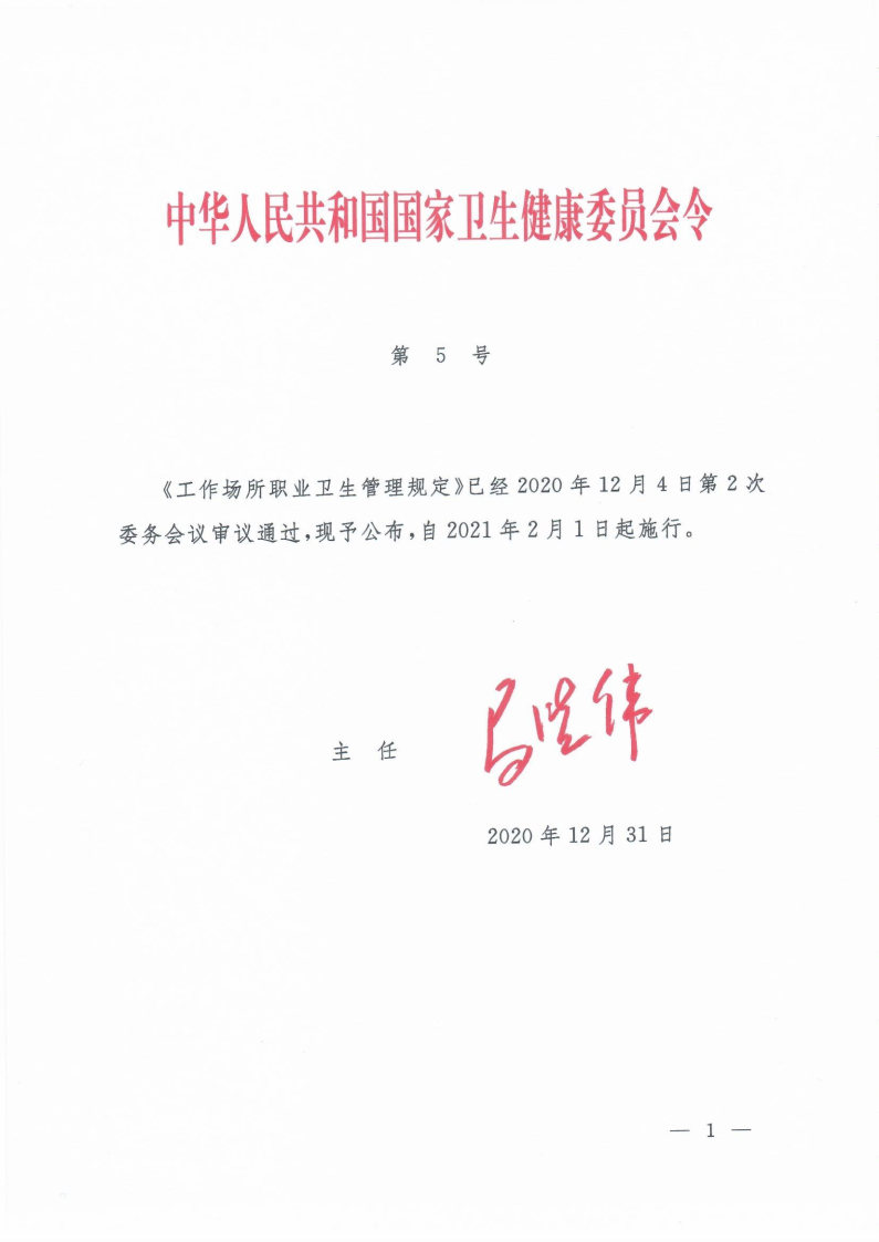 工作場(chǎng)所職業(yè)衛(wèi)生管理規(guī)定(國家衛(wèi)健委令第5號(hào))
